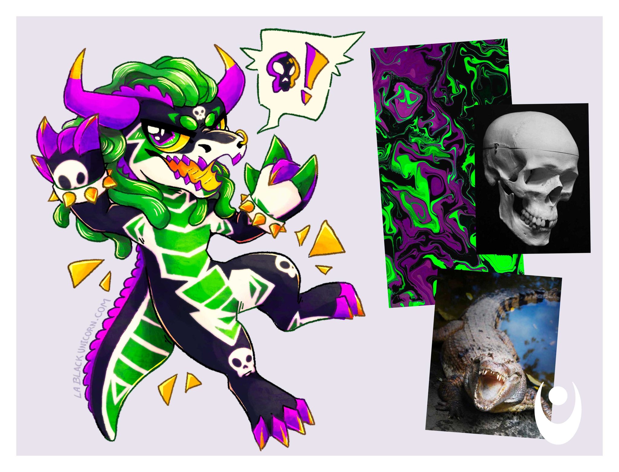 – Einzigartiges und fesselndes „Toony“-Design, das den mystischen Reiz eines tätowierten Krokodils mit Hörnern vereint.