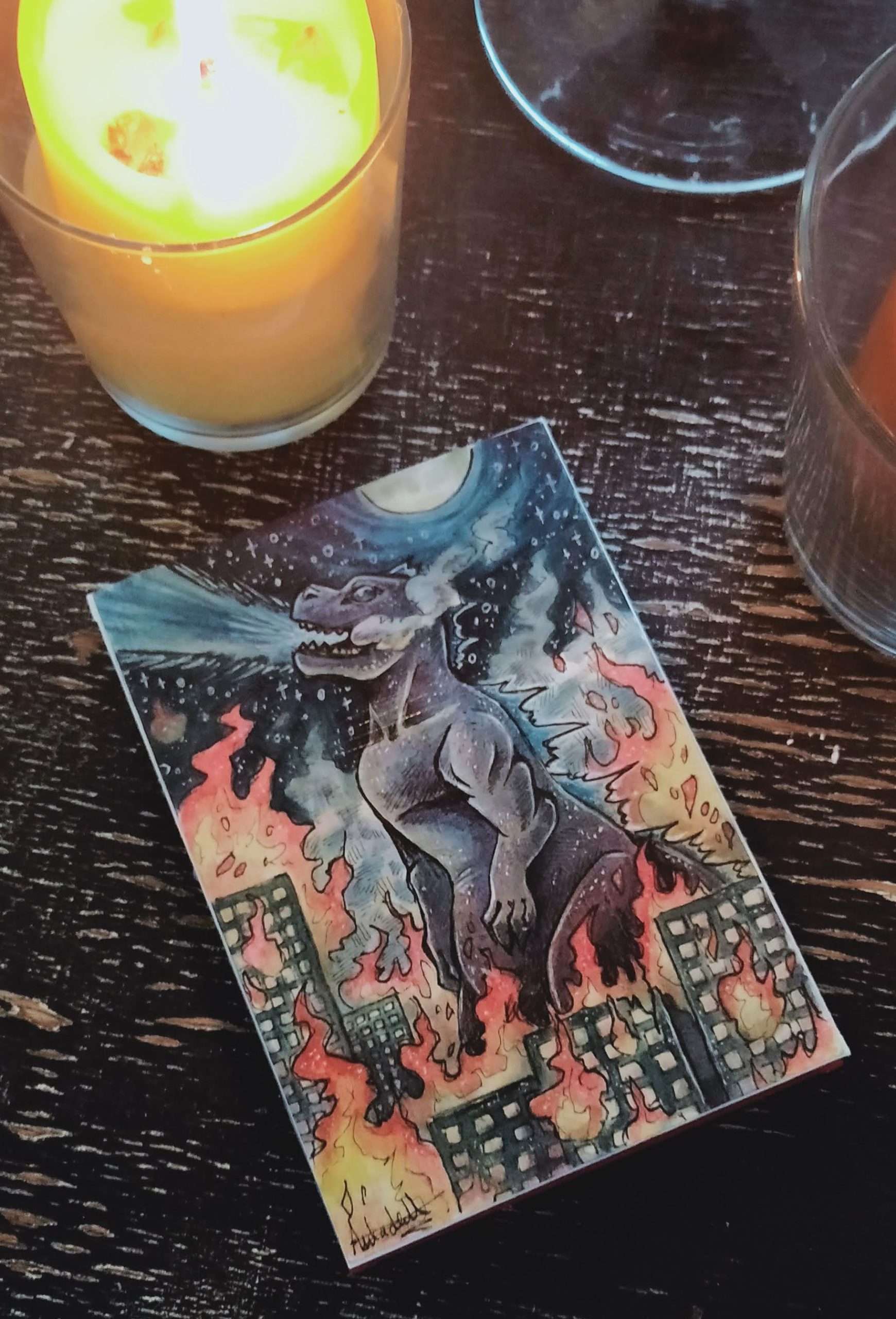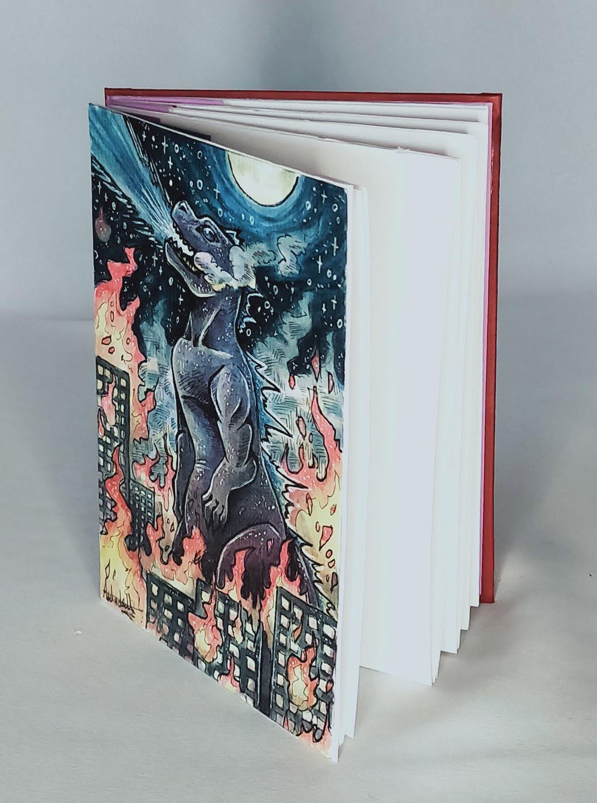 GODZILLA Handgebundenes Notizbuch mit Originalillustration