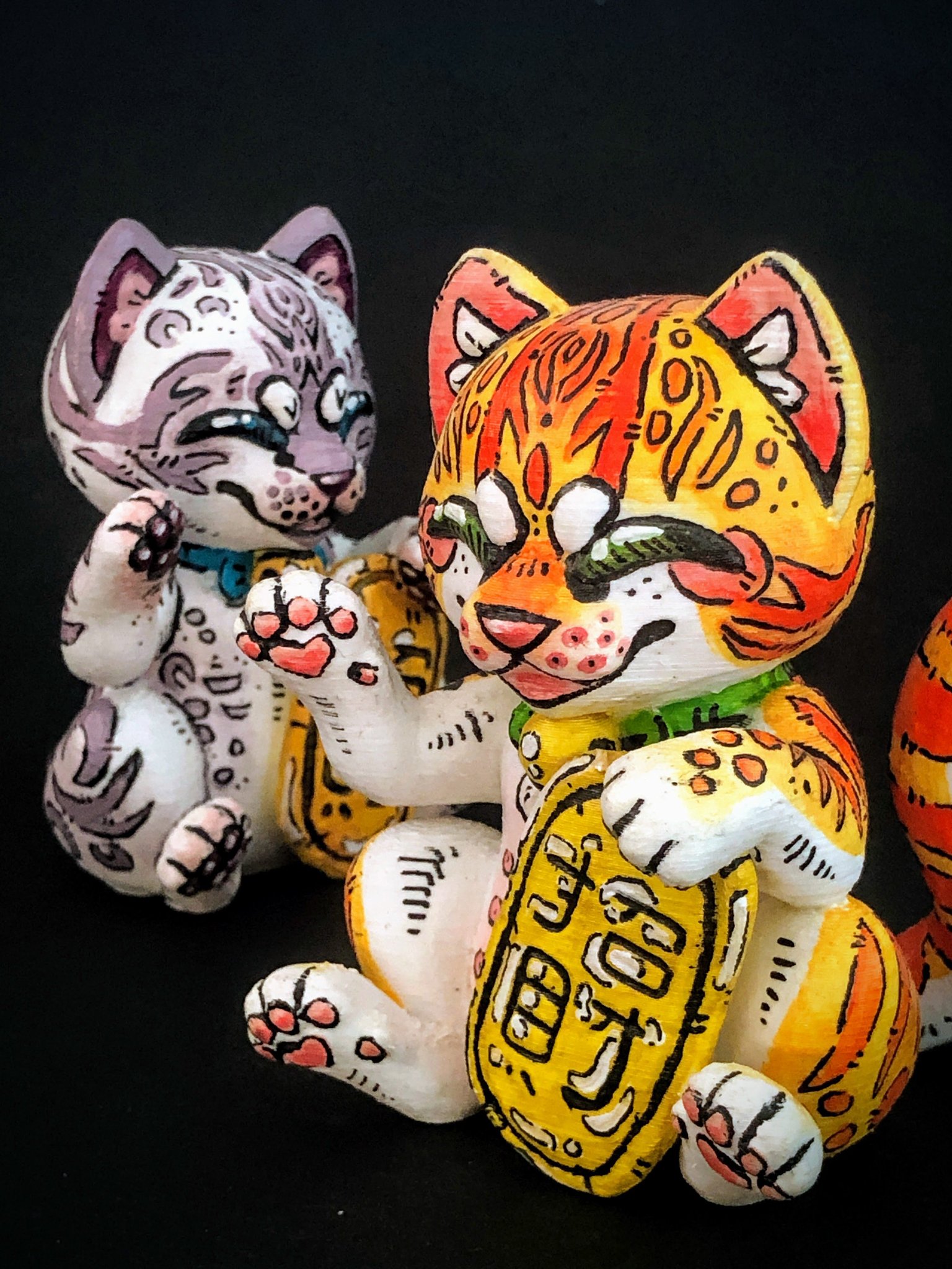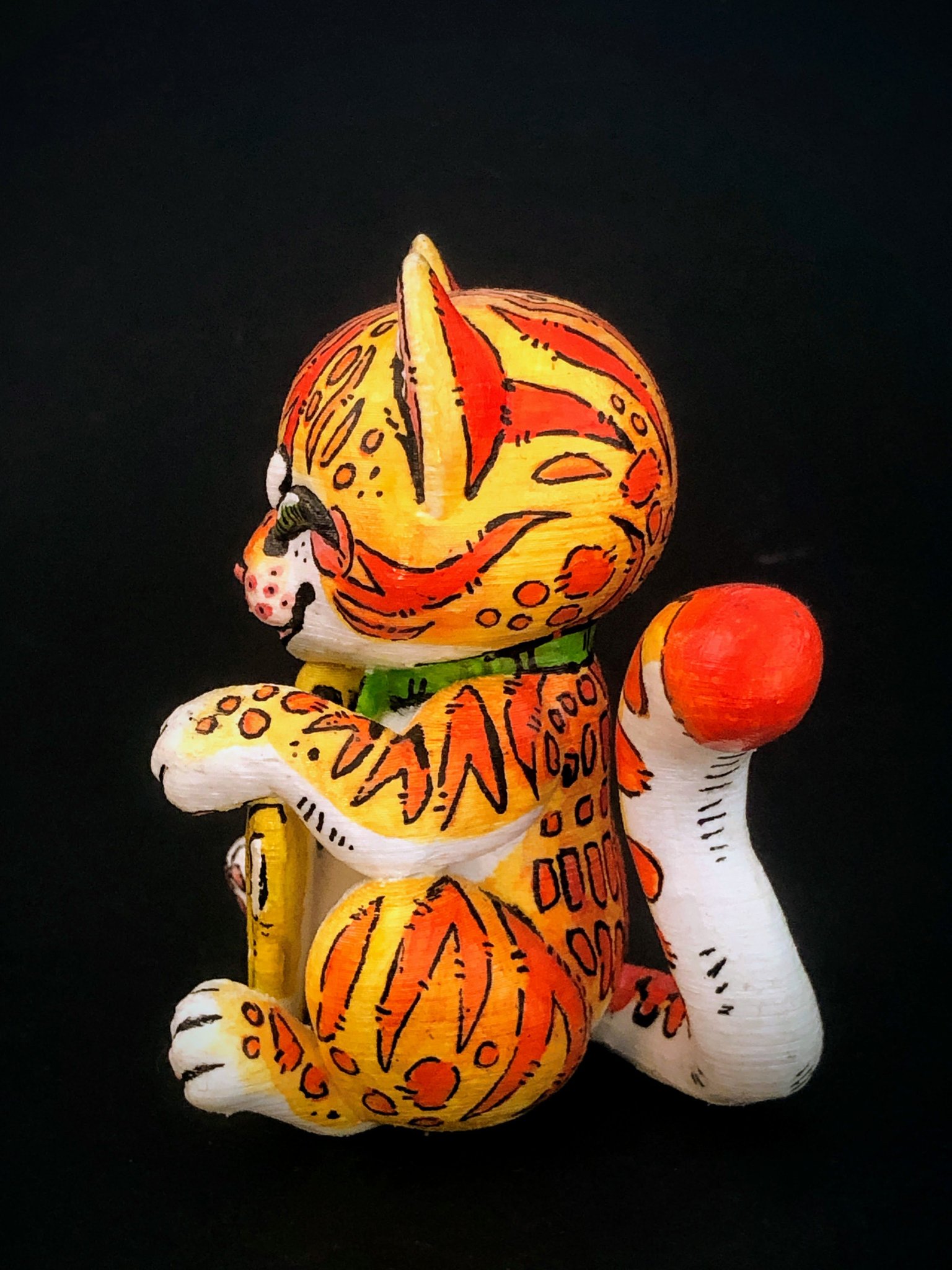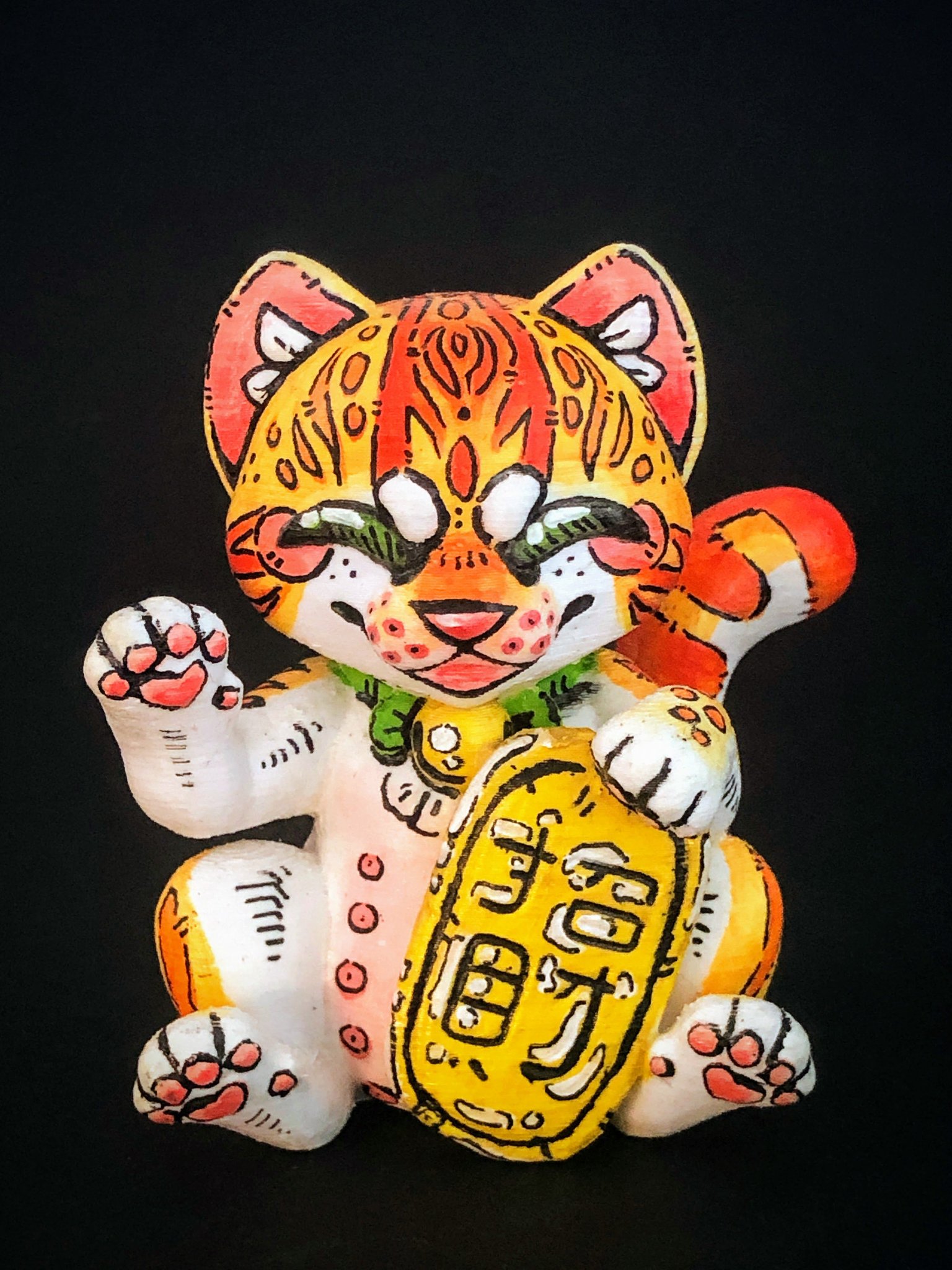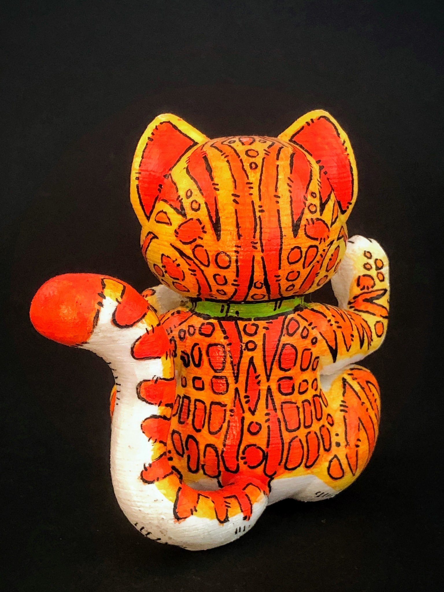 Voici une petite surprise : notre Maneki-neko Tigre Orange. Petit mais audacieux, ce félin n’est pas du genre à passer inaperçu. Avec son manteau d’orange intense, il a cette brillance unique qui illumine la pièce et réchauffe les cœurs. Il s’agit d’une œuvre d’art minutieuse, faite avec soin et passion. Chaque détail de son pelage tigré est peint à la main, ce qui renforce encore plus son caractère unique. Mais ne te laisse pas tromper par sa petite taille. Ce Maneki-neko a plus à offrir que son apparence. Il est connu pour être un porteur de bon augure, un petit clin d’œil de la vie pour t’apporter de la joie et de bons moments.