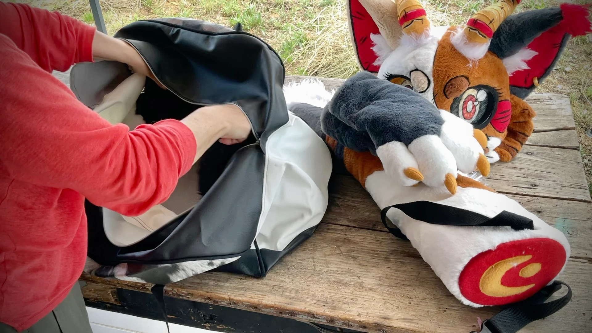 Sa grande taille est prévue pour un fursuit partiel composé d’une tête large avec de grandes oreilles, une queue pliable, des gants, des pâtes et une paire d’ailes. Il peut aussi contenir d’autres petits accessoires.