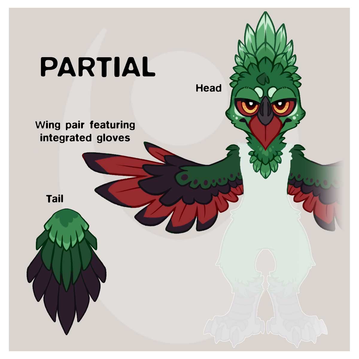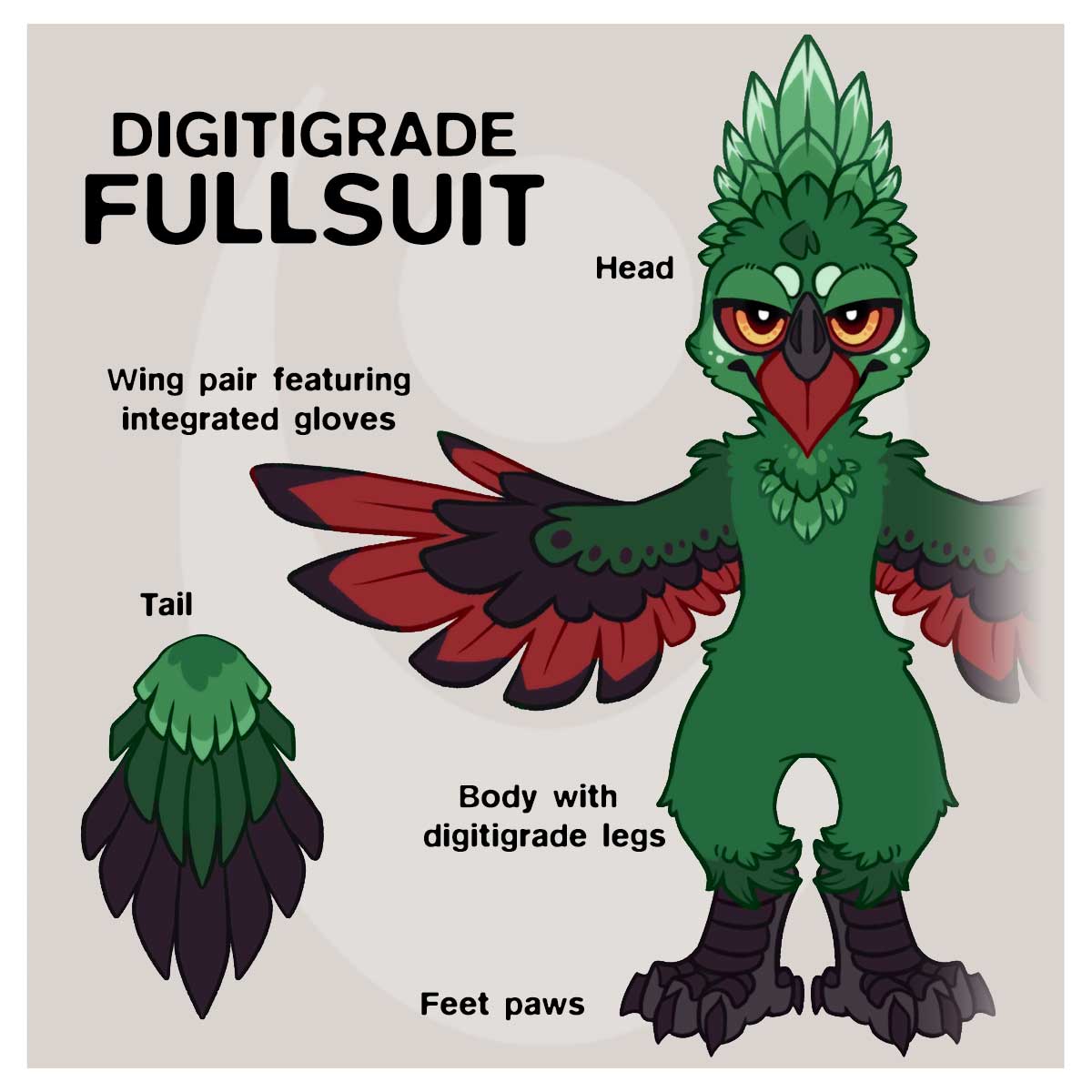 Inclut la tête, la queue, une paire d’ailes avec les gants incorporés et les bottes digitigrade, offrant un bon équilibre entre confort et style